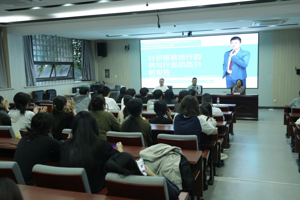 随后,天派针织股份有限公司董事长王晋围先生为全体服装与服饰设计专业师生作主题为“针织服装流行趋势与行业动态分析报告”。王董事长从天派针织股份有限公司的发展历程讲解开始,全面介绍了我国当前纺织服装发展的现状,重点讲解的无缝针织服装行业未来的基于和人才需求的红利,并深情并茂的向全体师生分享了他的创业经历,引起了同学们的广泛共鸣,现场响起了阵阵掌声。