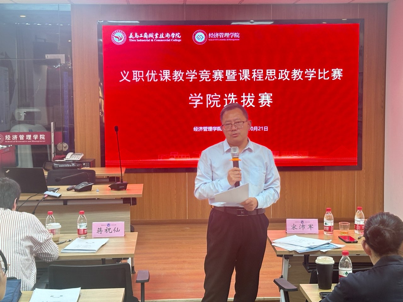 为全面推进学院课程思政建设,全方位提升教师课程思政教学能力,厚植教育家精神,经济管理学院于10月21日下午举办了第三届义职优课教学竞赛暨课程思政教学比赛校赛选拔赛。