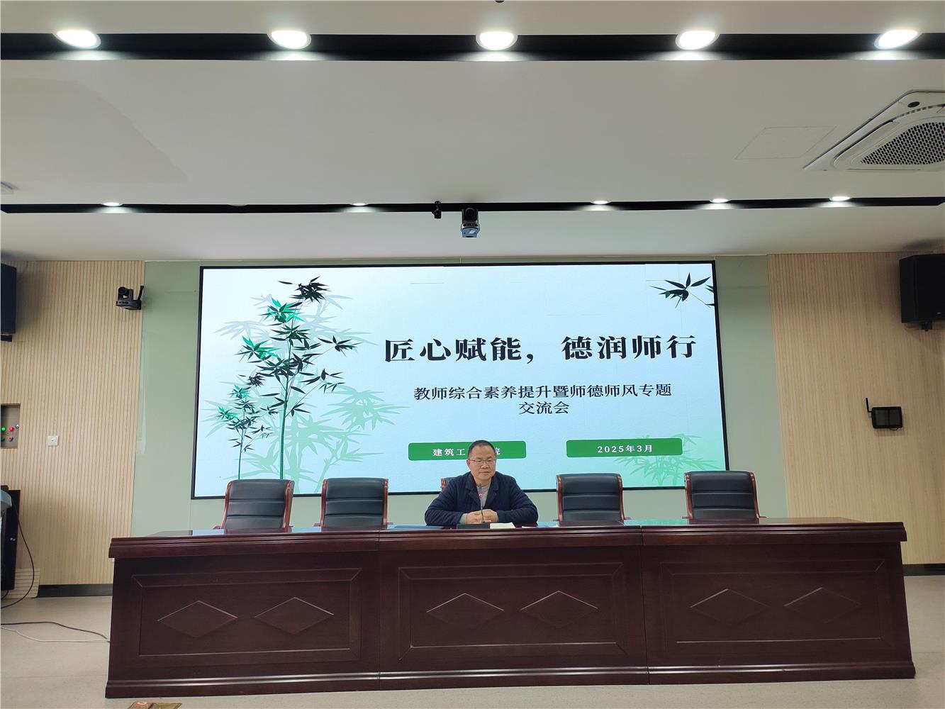 会上,建筑工程学院负责人结合近日担任新疆职业院校装配式技能大赛裁判长的实践经历分享了心得体会,并深入剖析建筑行业技术发展趋势与人才培养需求,同时他向全体教师提出了“三心四责”的要求,鼓励教师们以更高的标准要求自己,为学生的成长成才贡献力量。会议还通过剖析师德失范典型案例开展警示教育,强化教师红线意识与底线思维,筑牢师德师风思想防线。