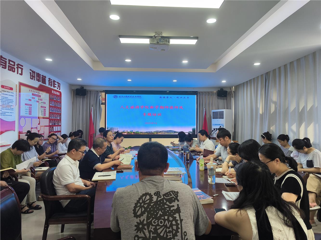 新学期伊始,为进一步强化教师队伍师德师风建设,切实将立德树人根本任务落到教育教学各环节,9月15日,我院在学院会议室组织开展全体教师师德师风专题培训,为新学期教育教学工作筑牢思想根基。