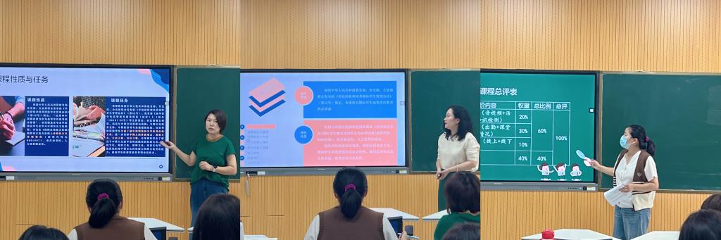 本次“说课程”教研现场,商务汉语方向的课程负责人认真筹备展示课件,围绕各自课程进行了详细介绍,从课程性质与任务、课程目标与要求、课程结构与内容、学生考核与评价、教学实施与保障、课程特色、资源开发以及建设目标等八个方面进行了细致剖析,充分展示了对课程建设的积累与思考。
