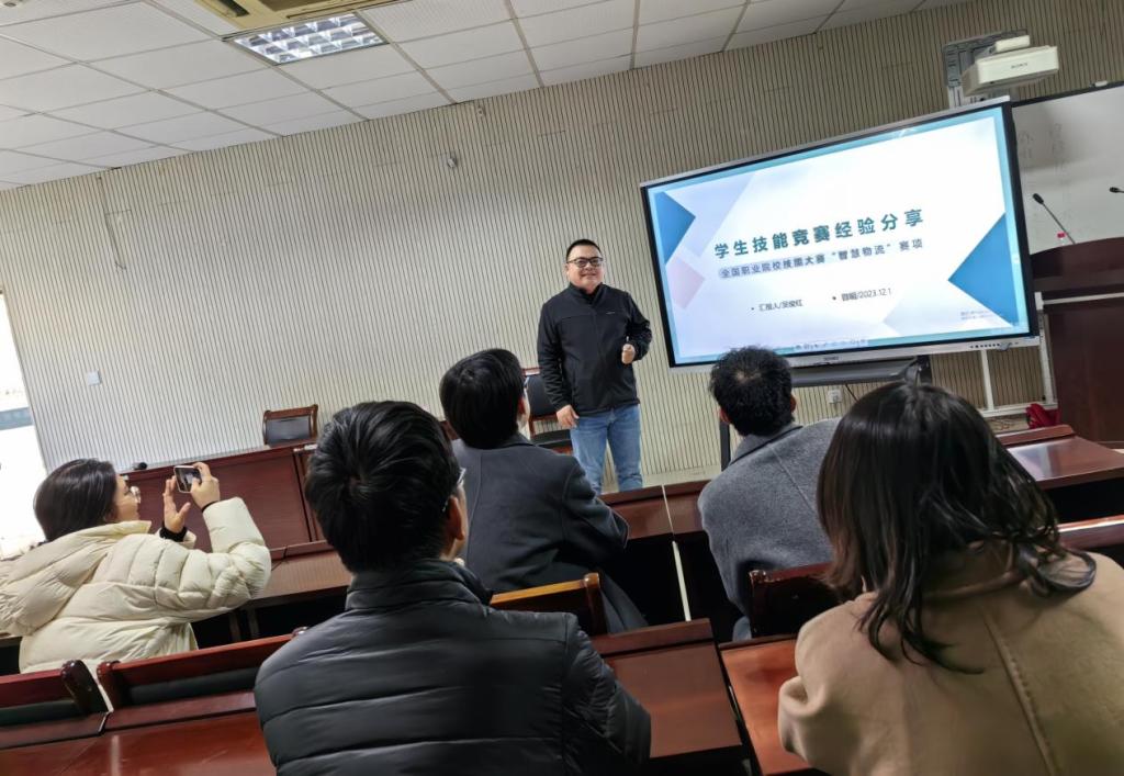 2023年12月1日,在外语外贸学院会议室,现代物流管理专业吴俊红老师作了全国职业院校技能大赛指导经验分享。