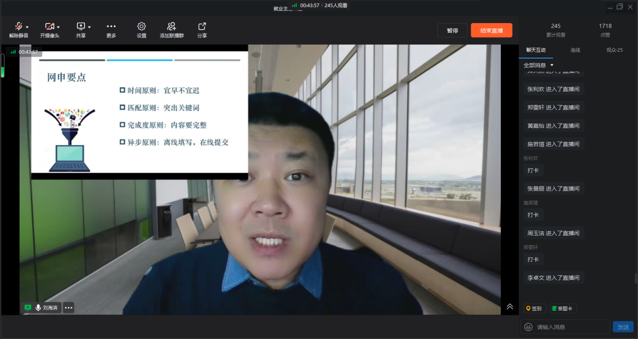 为切实做好学院2024届毕业生就业指导和服务工作,进一步提升学院教师指导毕业生就业创业能力,增强毕业生就业竞争,12月2日晚,人文旅游学院在钉钉群线上举办了线上就业主题讲座,学院教师和在外实习毕业生300余人参加。