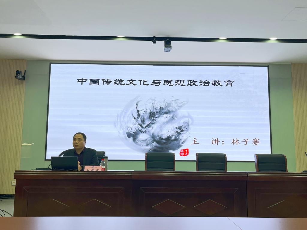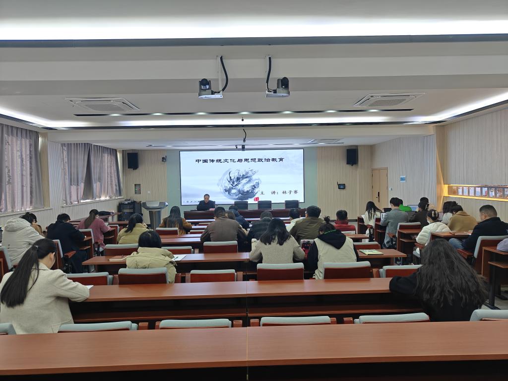 12月7日下午,浙江师范大学教授、博士生导师、马克思主义学院副院长林子赛应邀为我校教师作题为《中国传统文化与思想政治教育》的专题讲座。学校全体思政课教师、辅导员、新入职教师参加了本次培训。