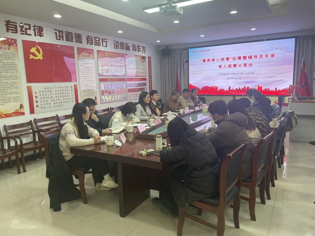 为进一步加强辅导员队伍建设,全面展示辅导员思政育人工作成效,挖掘辅导员践行育人使命的生动实践和感人事迹,1月23日,人文旅游学院举办了2023年度辅导员育人故事分享会,学校党委委员、副院长徐美燕,宣传部、团委负责人,人文旅游学院、创意设计学院、创业学院党委负责人以及全体辅导员参加了会议。